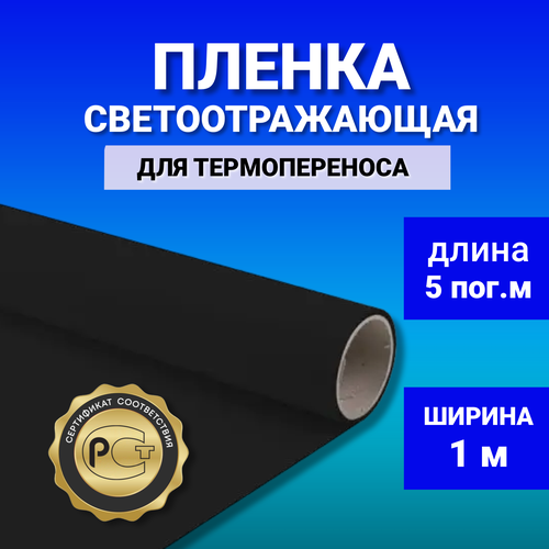 Светоотражающая пленка черная в рулоне 1 м x 5 м для термонаклеек на одежду, сумки, коляски