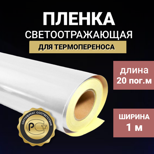 Светоотражающая пленка белая в рулоне 1 м x 20 м для термонаклеек на одежду, сумки, коляски
