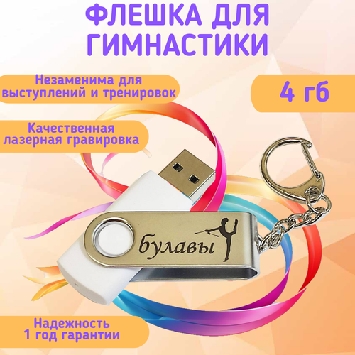 Подарочный USB-накопитель гимнастика С булавами сувенирная флешка белая 4GB