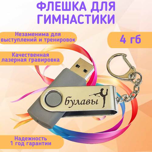 Подарочный USB-накопитель гимнастика С булавами сувенирная флешка серая 4GB