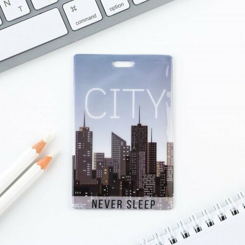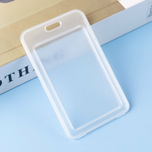 Бейдж для пропуска, пластик, прозрачный, вертикальный, зажим