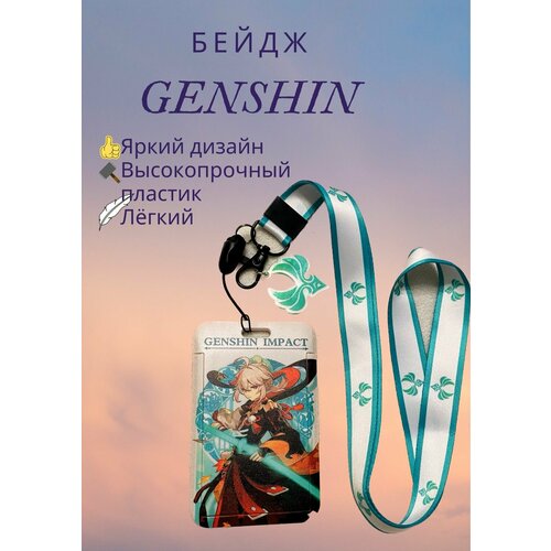 Бейдж для пропуска с брелком, картхолдер на ленте 45 см с брелком, держатель для карт с брелком Кадзуха Геншин