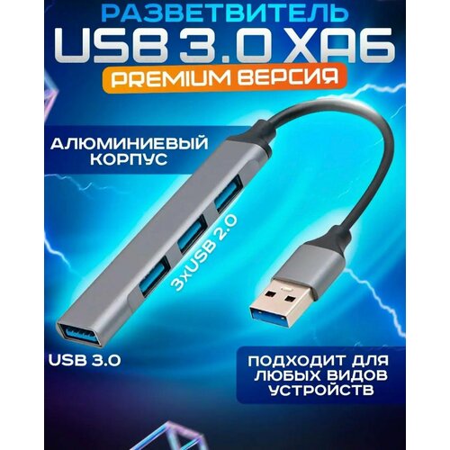 "Разветвитель для MacBook и ноутбуков" - 4 порта USB / HUB USB на 4 USB/Серый