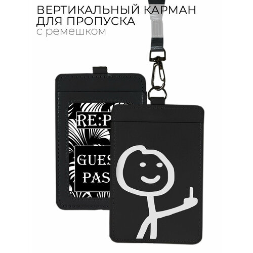 Чехол (бейдж) для пропуска и карт на ленте с принтом "Relaxing" черный