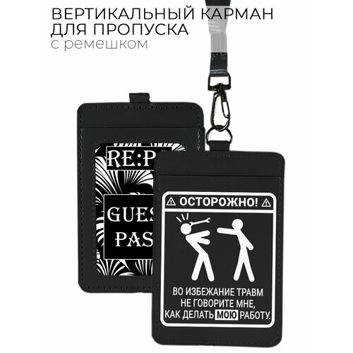 Чехол (бейдж) для пропуска и карт на ленте с принтом "Не говори как мне делать мою работу!" черный