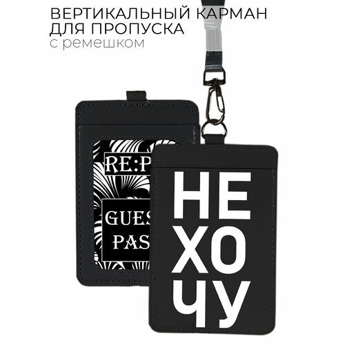 Чехол (бейдж) для пропуска и карт на ленте с принтом "НЕ хочу!" черный