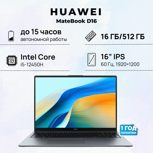 Ноутбук HUAWEI MateBook D16 Intel core i5-12450H+16+512, (MCLF-X), Космический серый, (53013WXF)