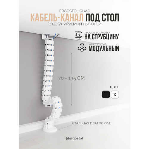 Особенности:● Универсальность. Кабель-канал раздвижной, поэтому подходит для письменных, компьютерных, офисных столов разных размеров.● Установка. Крепится на струбцину, не нужно просверливать отверстия в столешнице.● Долговечность. Имеет продолжительный срок службы. Гарантия производителя 1 год.● Удобство. Фиксаторы на Ergostol Х-Tray Pro упростят укладку проводов и шнуров от компьютера. Ремешки кабельной стяжки в комплекте!● Мобильность. Больше никакого беспорядка.