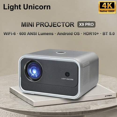 Мини - портативный проектор Light Unicorn X9 PRO 1080P с поддержкой 4K проектора Android Wifi 6