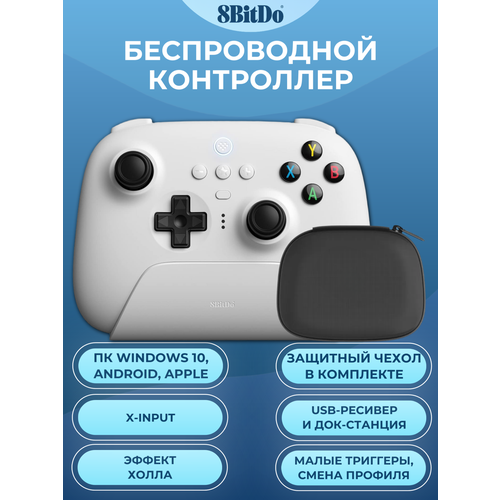 Беспроводной геймпад 8BitDo Ultimate 2.4G Wireless Controller для ПК, Android, Apple, белый, в чехле