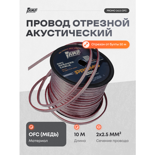 Провод акустический AMP PROMO 2х2.5 OFC 10 метров отрезной белый/красный