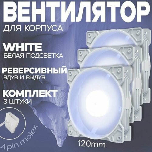 Комплект вентиляторов системы охлаждения COOLMOON (кулер) с ARGB подсветкой для корпуса ПК 120x120x25мм, подключение 5v3pin+4pin, белый+разветвители