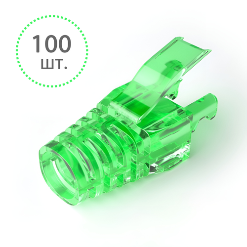 Колпачки на вилку коннектора 8P8C RJ-45, полупрозрачные, защитные, на кабель диаметром до 6.5 мм, зеленые (100 шт.)