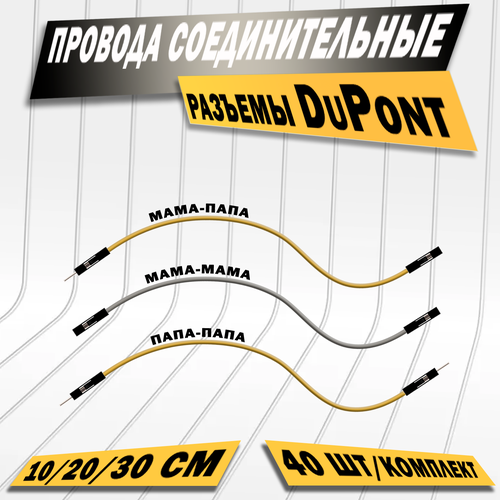 Провода соединительные DuPont, папа-папа, 30см, комплект 40 штук