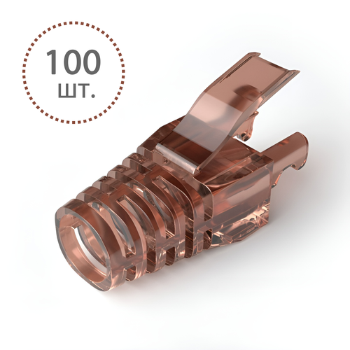 Колпачки на вилку коннектора 8P8C RJ-45, полупрозрачные, защитные, на кабель диаметром до 6.5 мм, коричневые (100 шт.)