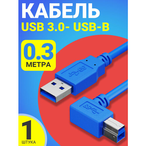 Кабель переходник GSMIN USB 3.0 (M) - USB-B (M) угловой, 0.3м (Синий)