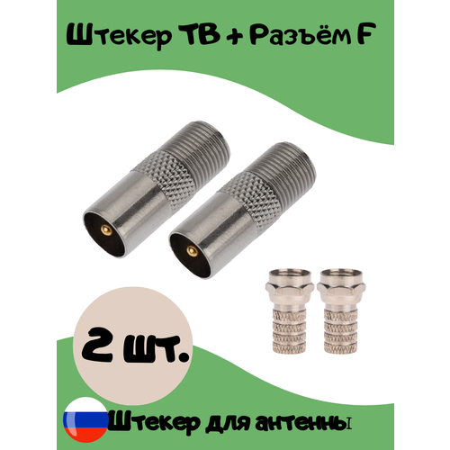 Штекер антенный для ТВ + F разъём (папа) 2 шт.
