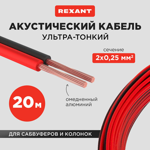 Кабель акустический REXANT 2х0,25 мм², красно-черный, мини-бухта 20 м