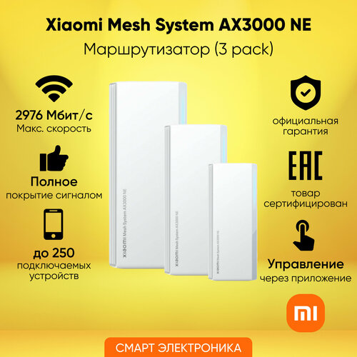 белыйMesh система Xiaomi AX3000 NE RU(3 pack) - это высококачественная Wi-Fi система от известного бренда Xiaomi. Она обеспечивает стабильное и быстрое подключение к интернету, что делает ее незаменимым помощником в повседневной жизни.