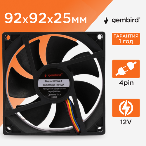 Вентилятор для корпуса Gembird D9225SM-4, 0.2 А