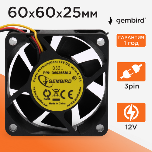 Gembird Вентилятор Gembird Вентилятор 60x60x15, втулка, 3pin, провод 25см D6015SM-3