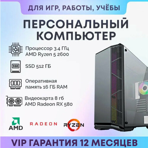Системный блок ПК Игровой компьютер Ryzen 5 2600 16GB DDR4 RX 580 SSD 512 GB