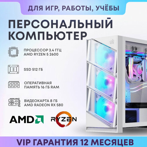 Системный блок AMD R2600RX580korpus (AMD Ryzen 5 2600 (3.4 ГГц), RAM 16 ГБ, SSD 512 ГБ, AMD Radeon RX 580 (8 Гб), Windows 10 Pro)