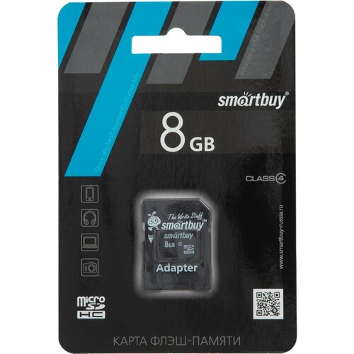 Карта памяти SmartBuy microSDHC 8 ГБ Class 10, R/W 23/17 МБ/с, RU, 1 шт., черный