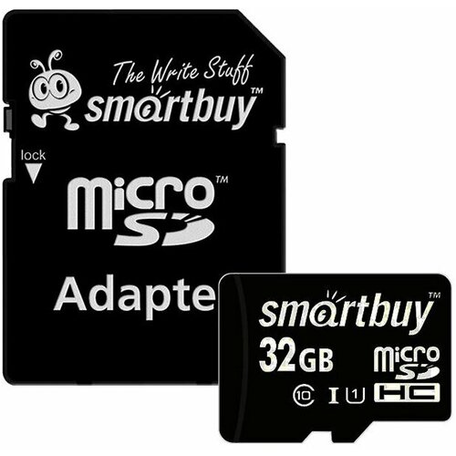 Карта памяти SmartBuy microSDHC 32 ГБ Class 10, R/W 30/20 МБ/с, адаптер на SD, RU, 1 шт.