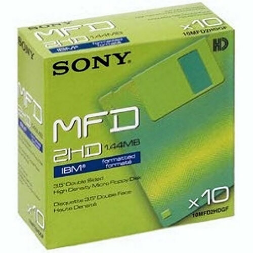 190737 10MFD2HDGF Дискеты 1,44 Мб SONY 3.5" дюйма MF 2HD картон (10 дискет в упаковке)