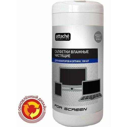 Салфетки влажные Attache Selection Professional для экранов (100 штук в тубе)