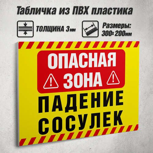 Информационная табличка "Опасная зона! Падение сосулек" / 30x20 см.