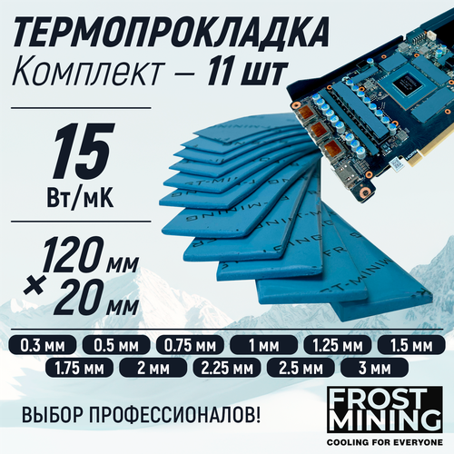 Комплект/набор термопрокладок для видеокарты 15 Вт/(Мк) 120х20мм - 11 термопрокладок различной толщины