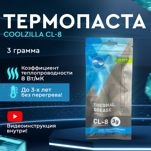 Термопаста Coolzila CL-8 для ПК/ноутбуков/видеокарт, 3гр, 8вт/мК (с лопаткой)