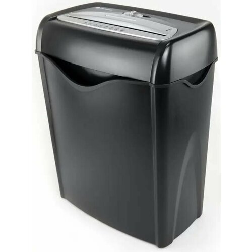 Шредер Heleos УМ28-5 черный/серебристый (секр. P-5) фрагменты 12лист. 28лтр. скрепки скобы пл. карты CD
