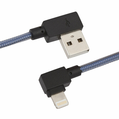 USB кабель "LP" для Apple 8 pin Г-коннектор оплетка леска (синий/блистер)