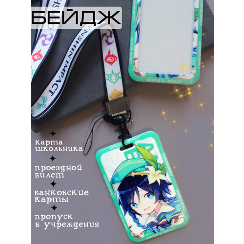 Держатель для бейджа/пропуска/карточки с лентой Venti / Венти Genshin Impact / Геншин Импакт
