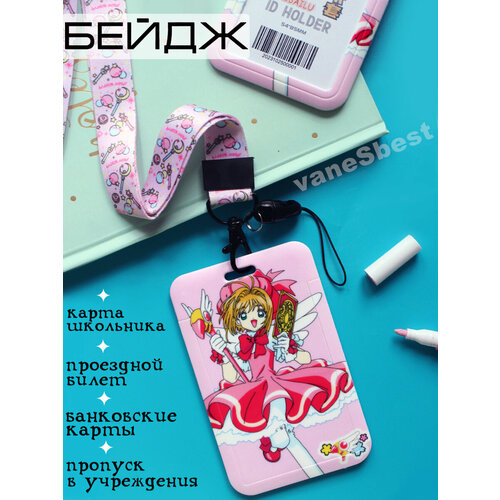 Держатель для бейджа/пропуска/карточки с лентой vaneSbest SAKURA / сакура