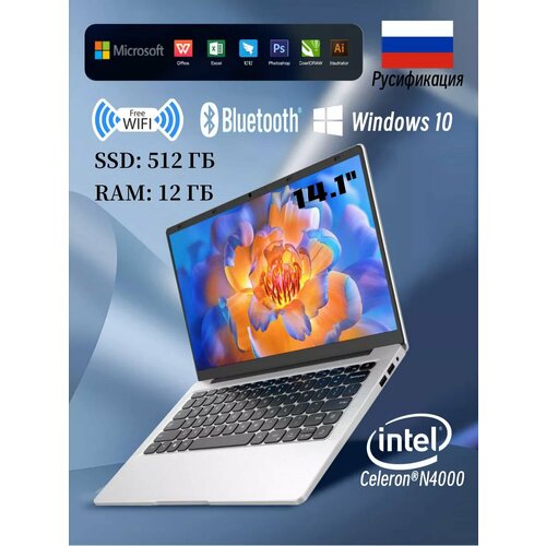 14.1" Ноутбук windows 10 Intel N4000 RAM 12GB SSD 512GB
