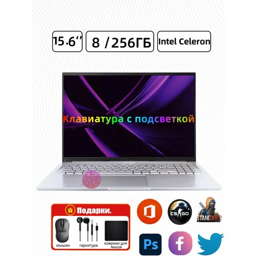 Тонкий Ноутбук для учебы и игр, RAM 8ГБ SSD 256ГБ