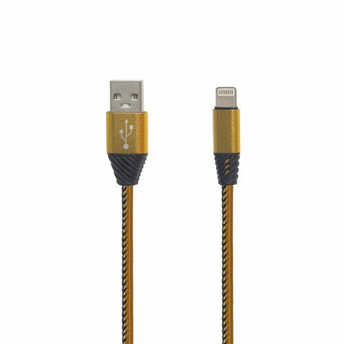 USB кабель "LP" для Apple Lightning 8 pin кожаная оплетка 1м золотой