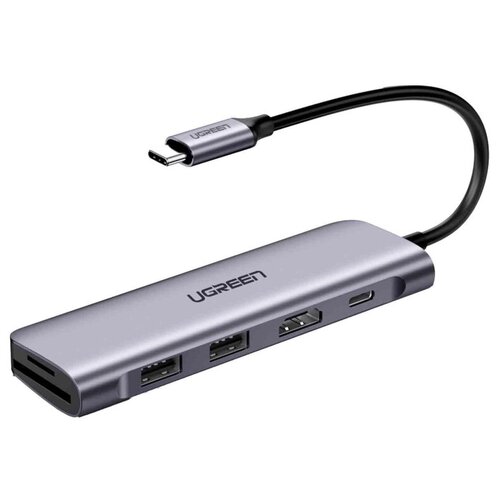 Хаб USB Ugreen CM512 USB Type-C - 2xUSB3.0+HDMI+RJ45+SD&TF+PD Grey 90568