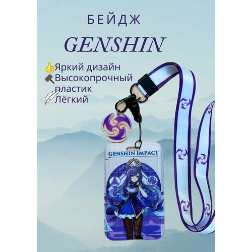 Бейдж для пропуска с брелком, картхолдер на ленте 45 см с брелком, держатель для карт с брелком Кэ Цин Геншин
