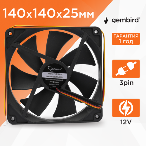 Вентилятор для корпуса Gembird D14025BM-3, 0.19 А, чeрный