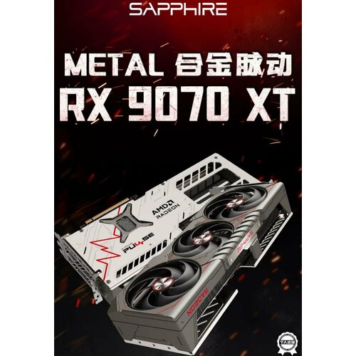 Видеокарта RX 9070XT Radeon AMD Sapphire Pulse Metal 16G, 2400 - 2970МГц трехкулерная, серый+белый премиум