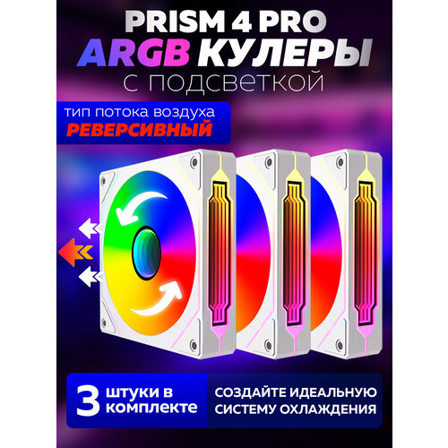 Белый Корпусный вентилятор для Компьютера Кулер Пк Prism 4 PRO 3 штуки Реверсивный