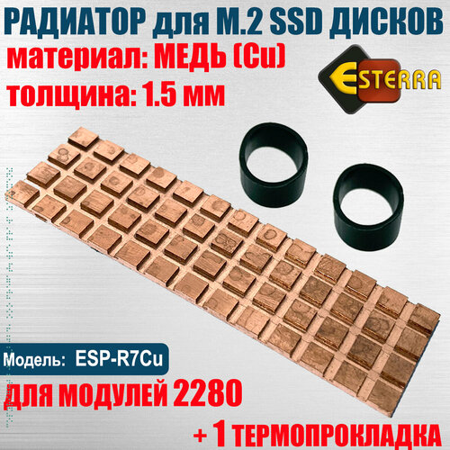 Радиатор для SSD M.2 2280 медь толщина 1.5мм, Модель ESP-R7Cu