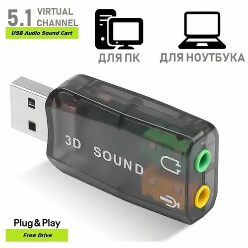 Внешняя звуковая карта USB 5.1 / адаптер для наушников с разъемом для микрофона 3,5 мм / аудио адаптер, переходник для наушников