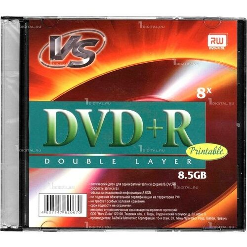 Диски VS DVD+R Slim Case (1шт.) 8.5 Gb Double Layer 8x Ink Printable (VSDVDPRDLSLPR01)