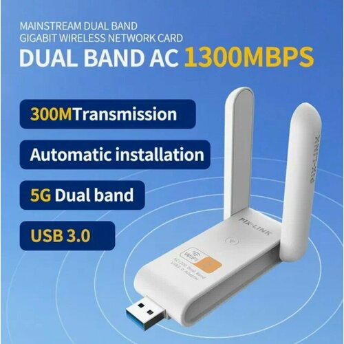Wi-Fi USB Адаптер ZT-F01, 2.4/5 ГГц, 1300 Мбит/сек, Сетевая Карта для ПК, для Компьютера, для Ноутбука